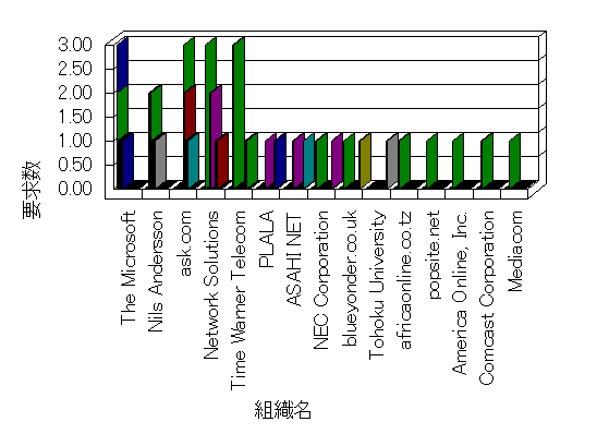 組織ユーザーにインターネット接続を提供する、商用または非営利団体、学術・行政機関などの、インターネット ドメイン で識別される団体や組織です。Microsoft Site Server Analysis は同じ組織に登録されたすべてのドメインを 1 つの組織としてグループ化します。ドメインがデータベースで使用できない場合は、1 つのインターネット ドメインが 1 つの組織を識別するのに使用されます。
