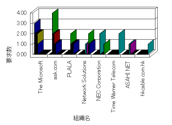 組織ユーザーにインターネット接続を提供する、商用または非営利団体、学術・行政機関などの、インターネット ドメイン で識別される団体や組織です。Microsoft Site Server Analysis は同じ組織に登録されたすべてのドメインを 1 つの組織としてグループ化します。ドメインがデータベースで使用できない場合は、1 つのインターネット ドメインが 1 つの組織を識別するのに使用されます。
