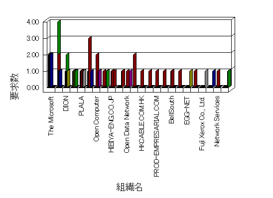 組織ユーザーにインターネット接続を提供する、商用または非営利団体、学術・行政機関などの、インターネット ドメイン で識別される団体や組織です。Microsoft Site Server Analysis は同じ組織に登録されたすべてのドメインを 1 つの組織としてグループ化します。ドメインがデータベースで使用できない場合は、1 つのインターネット ドメインが 1 つの組織を識別するのに使用されます。