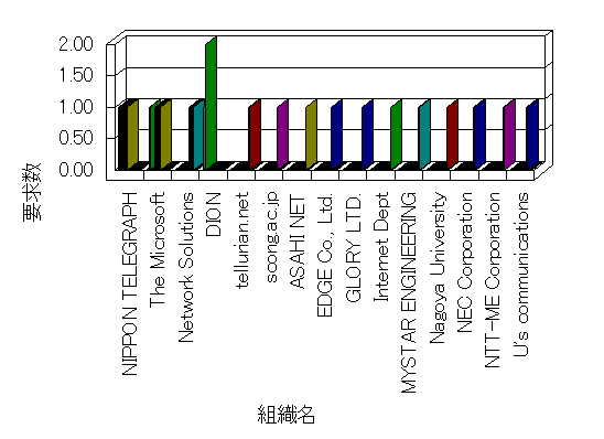 組織ユーザーにインターネット接続を提供する、商用または非営利団体、学術・行政機関などの、インターネット ドメイン で識別される団体や組織です。Microsoft Site Server Analysis は同じ組織に登録されたすべてのドメインを 1 つの組織としてグループ化します。ドメインがデータベースで使用できない場合は、1 つのインターネット ドメインが 1 つの組織を識別するのに使用されます。