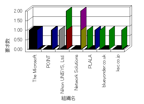 組織ユーザーにインターネット接続を提供する、商用または非営利団体、学術・行政機関などの、インターネット ドメイン で識別される団体や組織です。Microsoft Site Server Analysis は同じ組織に登録されたすべてのドメインを 1 つの組織としてグループ化します。ドメインがデータベースで使用できない場合は、1 つのインターネット ドメインが 1 つの組織を識別するのに使用されます。