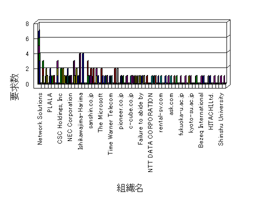 組織ユーザーにインターネット接続を提供する、商用または非営利団体、学術・行政機関などの、インターネット ドメイン で識別される団体や組織です。Microsoft Site Server Analysis は同じ組織に登録されたすべてのドメインを 1 つの組織としてグループ化します。ドメインがデータベースで使用できない場合は、1 つのインターネット ドメインが 1 つの組織を識別するのに使用されます。
