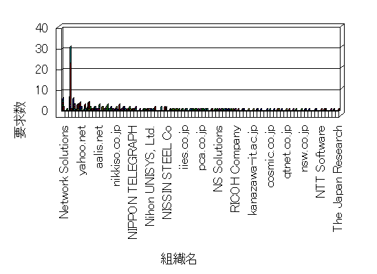 組織ユーザーにインターネット接続を提供する、商用または非営利団体、学術・行政機関などの、インターネット ドメイン で識別される団体や組織です。Microsoft Site Server Analysis は同じ組織に登録されたすべてのドメインを 1 つの組織としてグループ化します。ドメインがデータベースで使用できない場合は、1 つのインターネット ドメインが 1 つの組織を識別するのに使用されます。