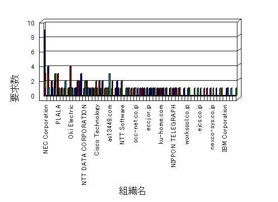 組織ユーザーにインターネット接続を提供する、商用または非営利団体、学術・行政機関などの、インターネット ドメイン で識別される団体や組織です。Microsoft Site Server Analysis は同じ組織に登録されたすべてのドメインを 1 つの組織としてグループ化します。ドメインがデータベースで使用できない場合は、1 つのインターネット ドメインが 1 つの組織を識別するのに使用されます。
