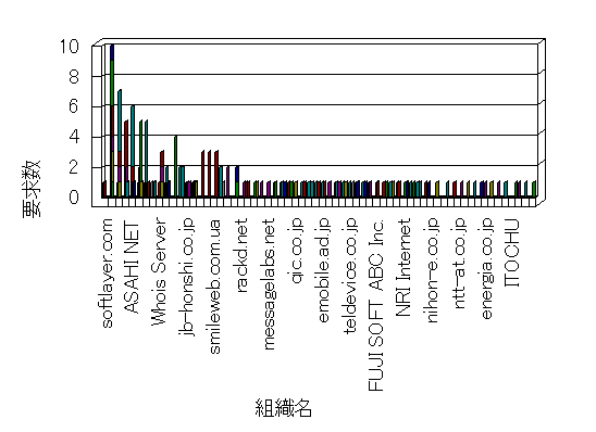 参照組織のサイトには、このサイトにリンクするページがあります。グラフでは、このサイトへのアクセス数に基づいた、上位 10 組織を示します。
