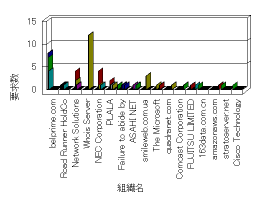 参照組織のサイトには、このサイトにリンクするページがあります。グラフでは、このサイトへのアクセス数に基づいた、上位 10 組織を示します。