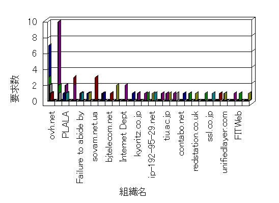 参照組織のサイトには、このサイトにリンクするページがあります。グラフでは、このサイトへのアクセス数に基づいた、上位 10 組織を示します。