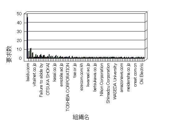 参照組織のサイトには、このサイトにリンクするページがあります。グラフでは、このサイトへのアクセス数に基づいた、上位 10 組織を示します。
