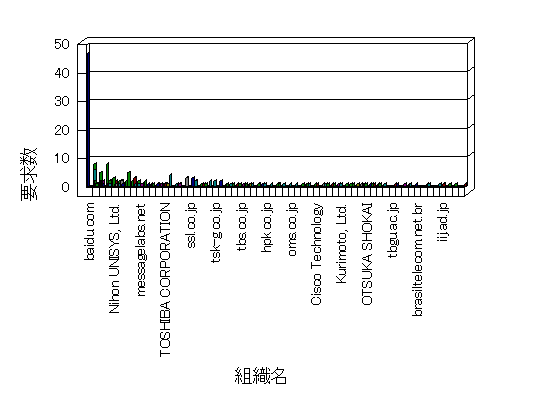 参照組織のサイトには、このサイトにリンクするページがあります。グラフでは、このサイトへのアクセス数に基づいた、上位 10 組織を示します。
