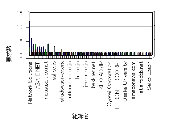 組織ユーザーにインターネット接続を提供する、商用または非営利団体、学術・行政機関などの、インターネット ドメイン で識別される団体や組織です。Microsoft Site Server Analysis は同じ組織に登録されたすべてのドメインを 1 つの組織としてグループ化します。ドメインがデータベースで使用できない場合は、1 つのインターネット ドメインが 1 つの組織を識別するのに使用されます。