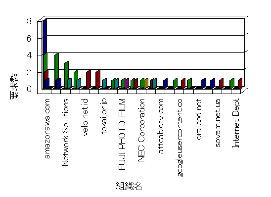 組織ユーザーにインターネット接続を提供する、商用または非営利団体、学術・行政機関などの、インターネット ドメイン で識別される団体や組織です。Microsoft Site Server Analysis は同じ組織に登録されたすべてのドメインを 1 つの組織としてグループ化します。ドメインがデータベースで使用できない場合は、1 つのインターネット ドメインが 1 つの組織を識別するのに使用されます。