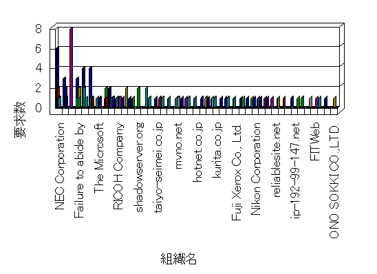 組織ユーザーにインターネット接続を提供する、商用または非営利団体、学術・行政機関などの、インターネット ドメイン で識別される団体や組織です。Microsoft Site Server Analysis は同じ組織に登録されたすべてのドメインを 1 つの組織としてグループ化します。ドメインがデータベースで使用できない場合は、1 つのインターネット ドメインが 1 つの組織を識別するのに使用されます。