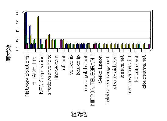 組織ユーザーにインターネット接続を提供する、商用または非営利団体、学術・行政機関などの、インターネット ドメイン で識別される団体や組織です。Microsoft Site Server Analysis は同じ組織に登録されたすべてのドメインを 1 つの組織としてグループ化します。ドメインがデータベースで使用できない場合は、1 つのインターネット ドメインが 1 つの組織を識別するのに使用されます。