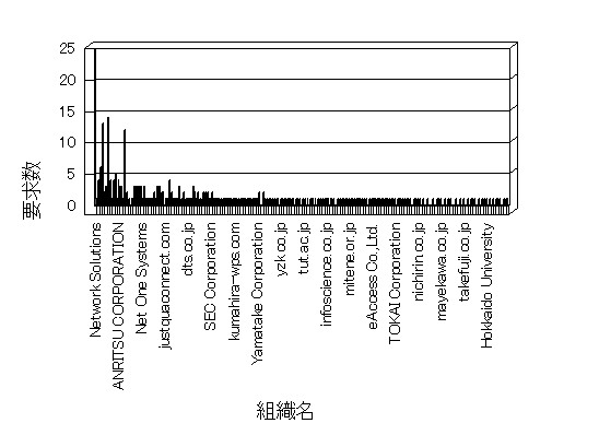 組織ユーザーにインターネット接続を提供する、商用または非営利団体、学術・行政機関などの、インターネット ドメイン で識別される団体や組織です。Microsoft Site Server Analysis は同じ組織に登録されたすべてのドメインを 1 つの組織としてグループ化します。ドメインがデータベースで使用できない場合は、1 つのインターネット ドメインが 1 つの組織を識別するのに使用されます。