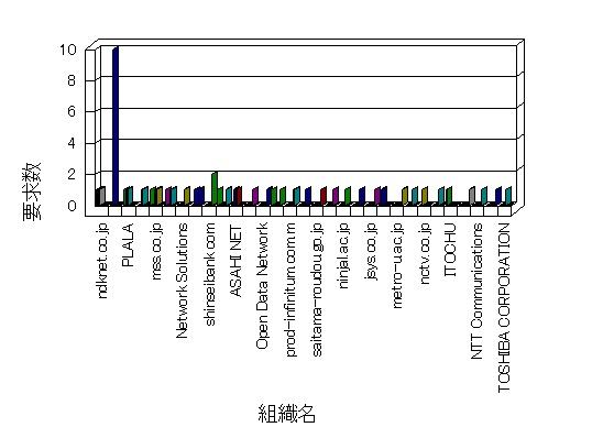 参照組織のサイトには、このサイトにリンクするページがあります。グラフでは、このサイトへのアクセス数に基づいた、上位 10 組織を示します。