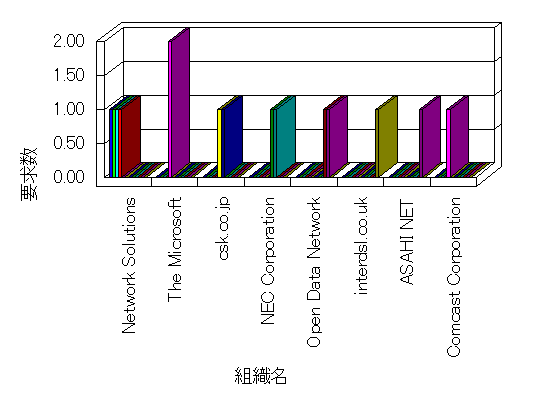組織ユーザーにインターネット接続を提供する、商用または非営利団体、学術・行政機関などの、インターネット ドメイン で識別される団体や組織です。Microsoft Site Server Analysis は同じ組織に登録されたすべてのドメインを 1 つの組織としてグループ化します。ドメインがデータベースで使用できない場合は、1 つのインターネット ドメインが 1 つの組織を識別するのに使用されます。